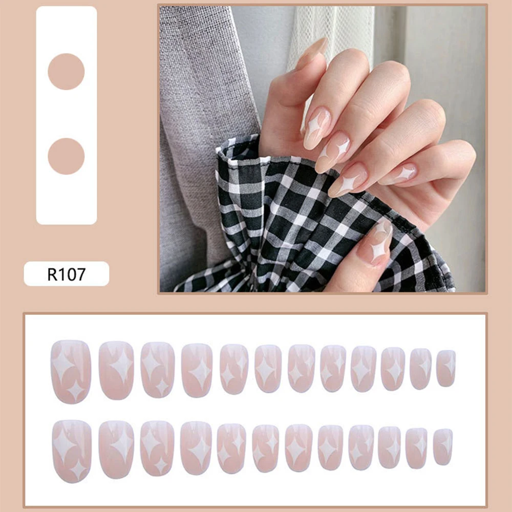 Накладные ногти разных стилей, 24 шт., цветные накладные ногти со съемным рисунком пламени, обнаженными французскими звездами, накладные ногти в форме накладных ногтей