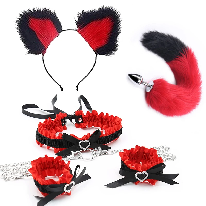 БДСМ лисий хвост набор Анальная пробка воротник кошачьи уши наручники взрослые аксессуары для косплея экзотические аксессуары без вибратора