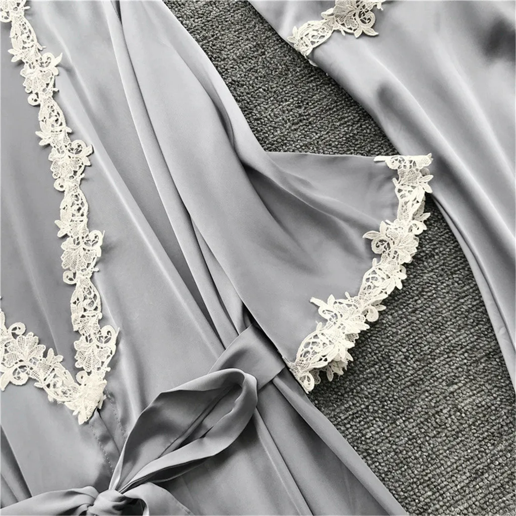 Комплект женский кружевной из халата и сорочки, 5 шт., комплект сек...