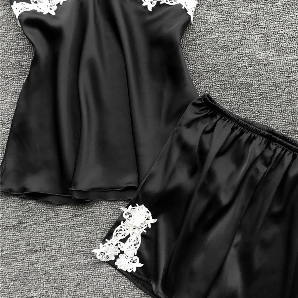Женская стильная пижама из пяти частей, кружевные шорты на бретельк...
