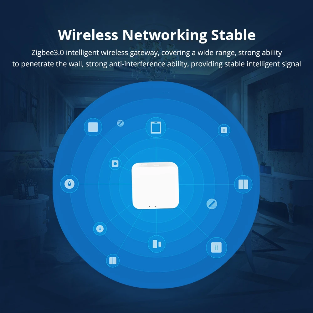 Шлюз позволяет управлять устройствами Tuya ZigBee/Bluetooth, такими как вилки, переключатели, лампы и датчики и т. д. Это обязательное условие для всех продуктов Tuya ZigBee.