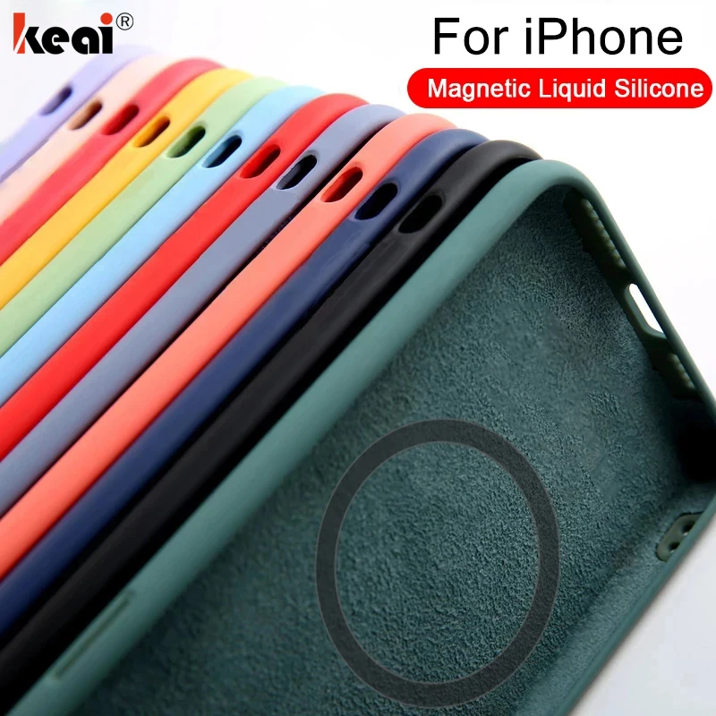 Магнитный чехол из жидкого силикона для iPhone 12 Pro Max 11 Pro X XS XR 7 8 Plus 13 Mini, Магнитная задняя крышка Magsafing с беспроводным зарядным устройством