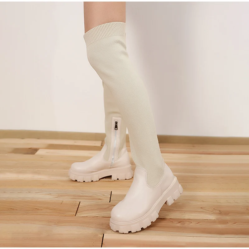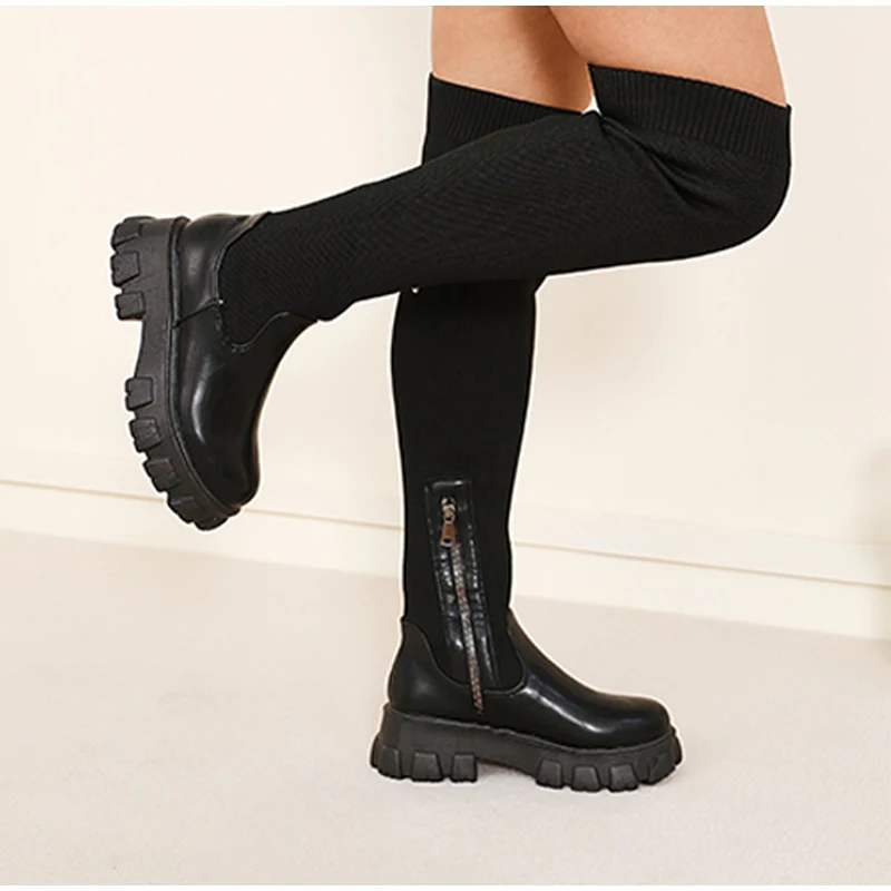 Женские сапоги выше колена 2021, женские зимние высокие сапоги, вязаные женские сапоги стрейч, сапоги на платформе, женские высокие сапоги-носки