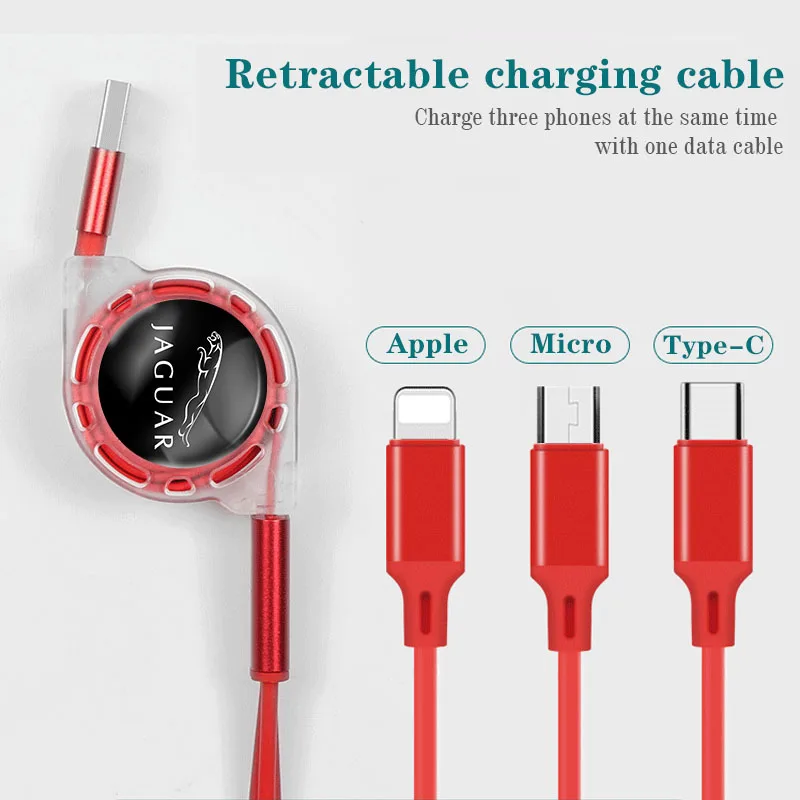 Выдвижной зарядный кабель для телефона 3 в 1 с логотипом автомобиля для Jaguar XF 250 X Type F Pace Xj X351 Xe S-Type Android XFR XKR