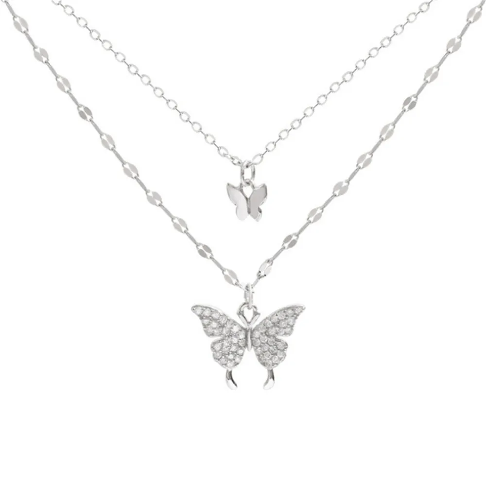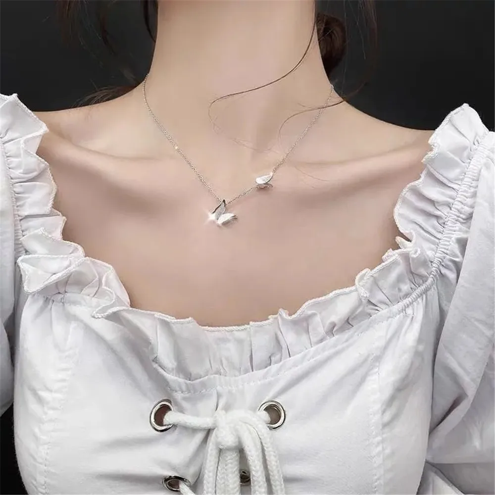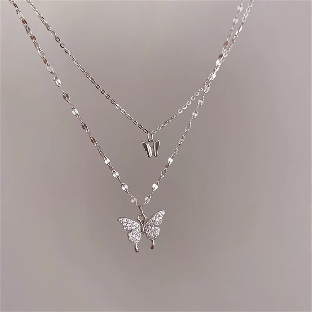 Новинка 2021, корейская мода, серебряное блестящее женское ожерелье с бабочкой, женское изысканное Двухслойное ожерелье на цепочке до ключиц, ювелирные изделия, подарки