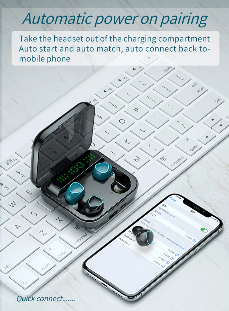 Новые наушники беспроводной TWS с умным цифровым дисплеем совместимые с Bluetooth беспроводные наушники стерео -вкладыши HIFI водонепроницаемые спортивные наушники для пар телефон