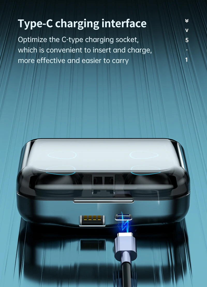 Особенности:Использование цифровой технологии шумоподавления CVC8.0Новейшие наушники-вкладыши TWS с бинауральные гарнитуры стерео Bluetooth гарнитура с 5,1 чип дает вам очень эффективной производительности беспроводной сети.Он оснащен Bluetooth-совместимым чипом V5.1, расстоянием подключения 10 м, стабильной производительностью, высокой передачей, низким потреблением и сильной совместимостью.Эргономичный дизайн обеспечивает более комфортную посадку на ушной раковине.Двухушный раздельный дизайн позволяет использовать одно ухо отдельно, что эквивалентно двум независимым bluetooth-гарнитурам.Зарядный отсек может использоваться как мобильный телефон, портативный мобильный телефон, поддержка горизонтального и вертикального размещенияСмотрите прямые трансляции и фильмы без необходимости приобретать дополнительный мобильный телефон-стенд.Левый и правый уши, канал свободен в использовании.Надежная совместимость, IOS/Android универсальный, управление одной кнопкой, простой и стильный.