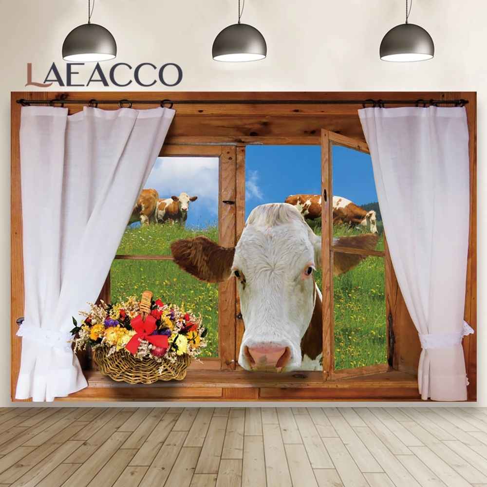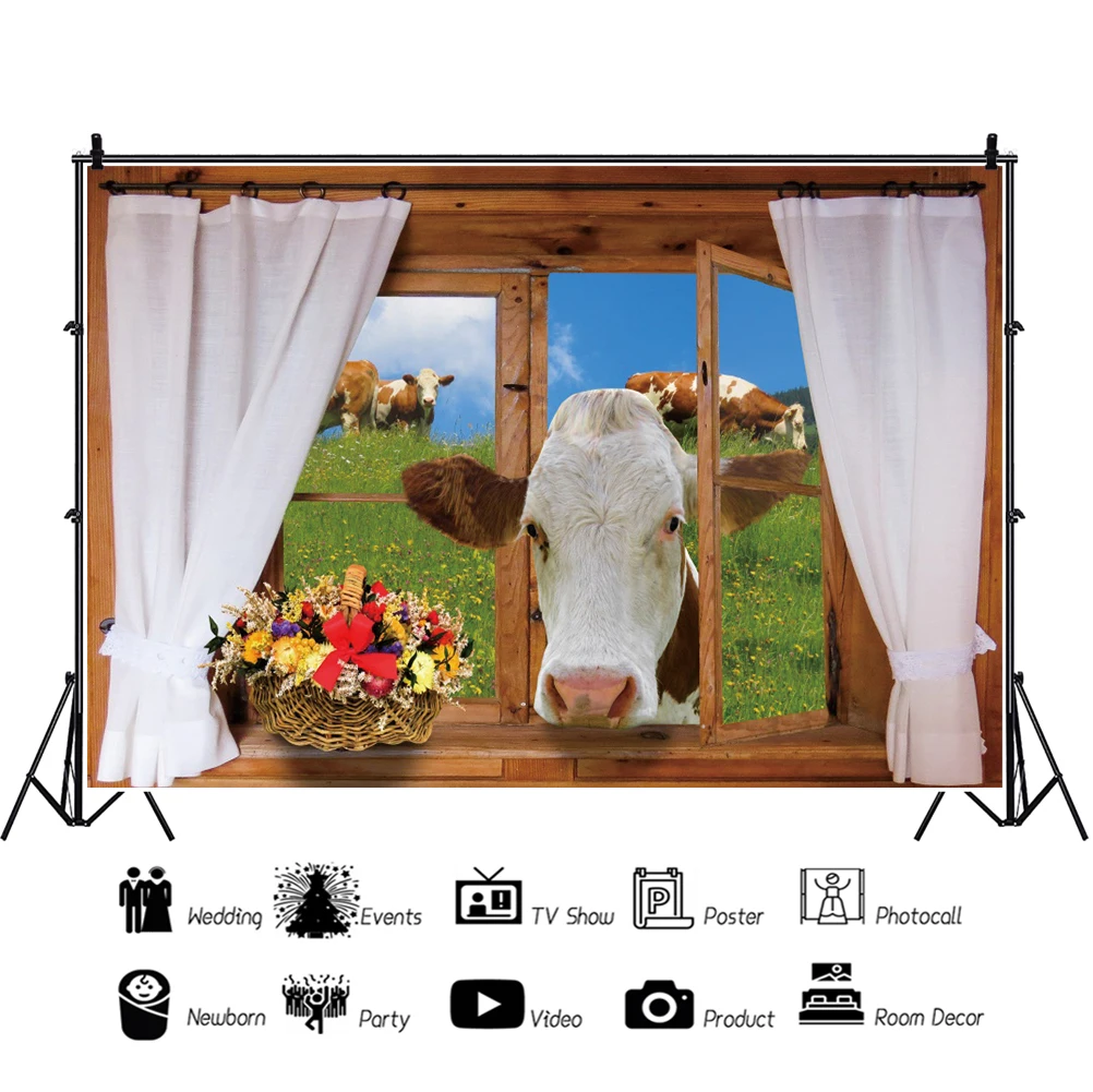 Зеленые фоны для фотосъемки, окно, ферма, сельская корова, корзина, Фотофон для фотостудии с подоконником