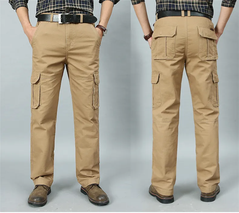 Брюки-карго мужские зимние с флисовой подкладкой, толстые мешковатые Джоггеры со множеством карманов в стиле милитари, повседневные длинные брюки, армейские штаны