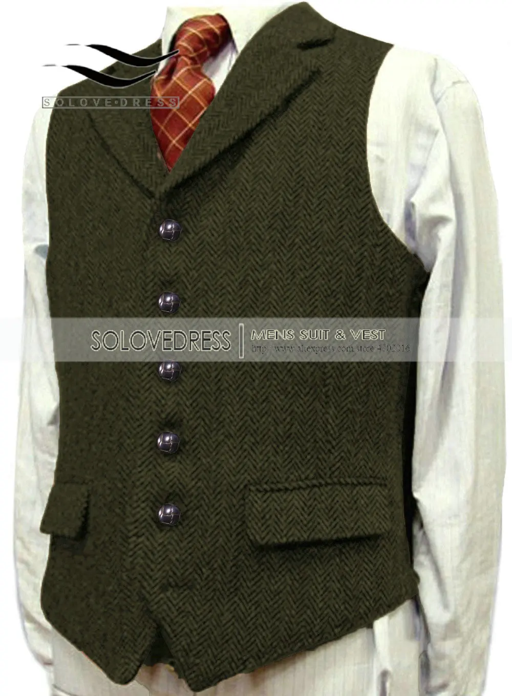 Мужской шерстяной твидовый Приталенный жилет для отдыха хлопок бордовый джентльмен в елочку деловой коричневый жилет блейзер для свадьбы жениха