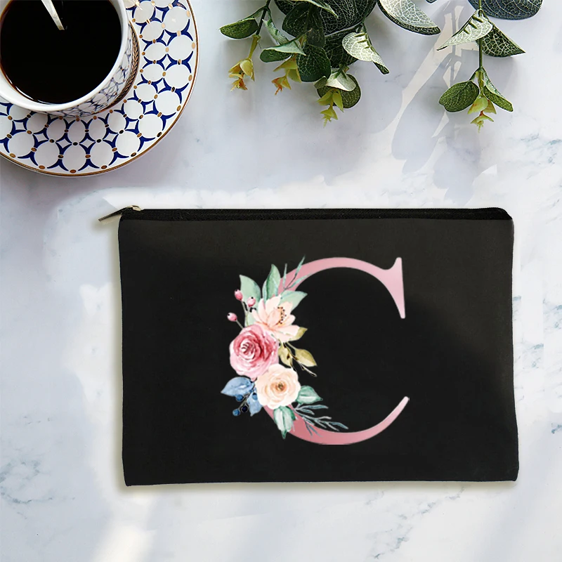 Косметички с цветочным принтом и алфавитом, модные холщовые черные ...