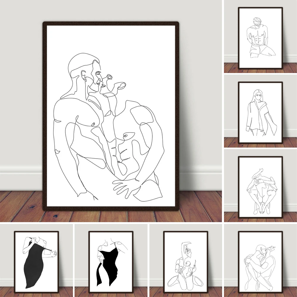 Романтические геи пары Kiss One Line художественный принт для геев для гостиной домашний декор
