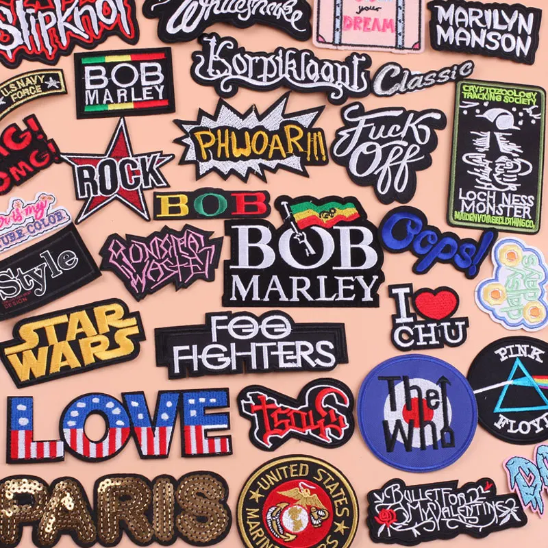 Нашивки с надписью Rock, термоклейкие нашивки с вышивкой в стиле хиппи Боб Band