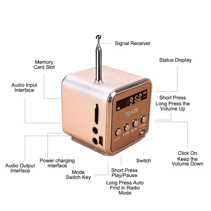 Портативный fm-радио с микро SD USB TF Bluetooth приемник MP3 музыкальный плеер встроенный аудио интерфейс динамик ЖК-дисплей