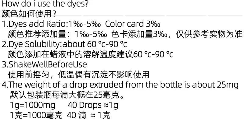 На фото я использовала 6 капель краски на 100мл парафина. Что четвертая что шестая капли - цвет почти не меняется В высохшем варианте получается что то среднее на примерах из картинки товара. Флакон не соответствует по виду с тем что в описании на картинке.