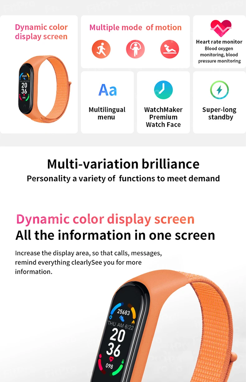 Фитнес-браслет подходит для смарт-часов pro M6 с магнитной зарядкой...