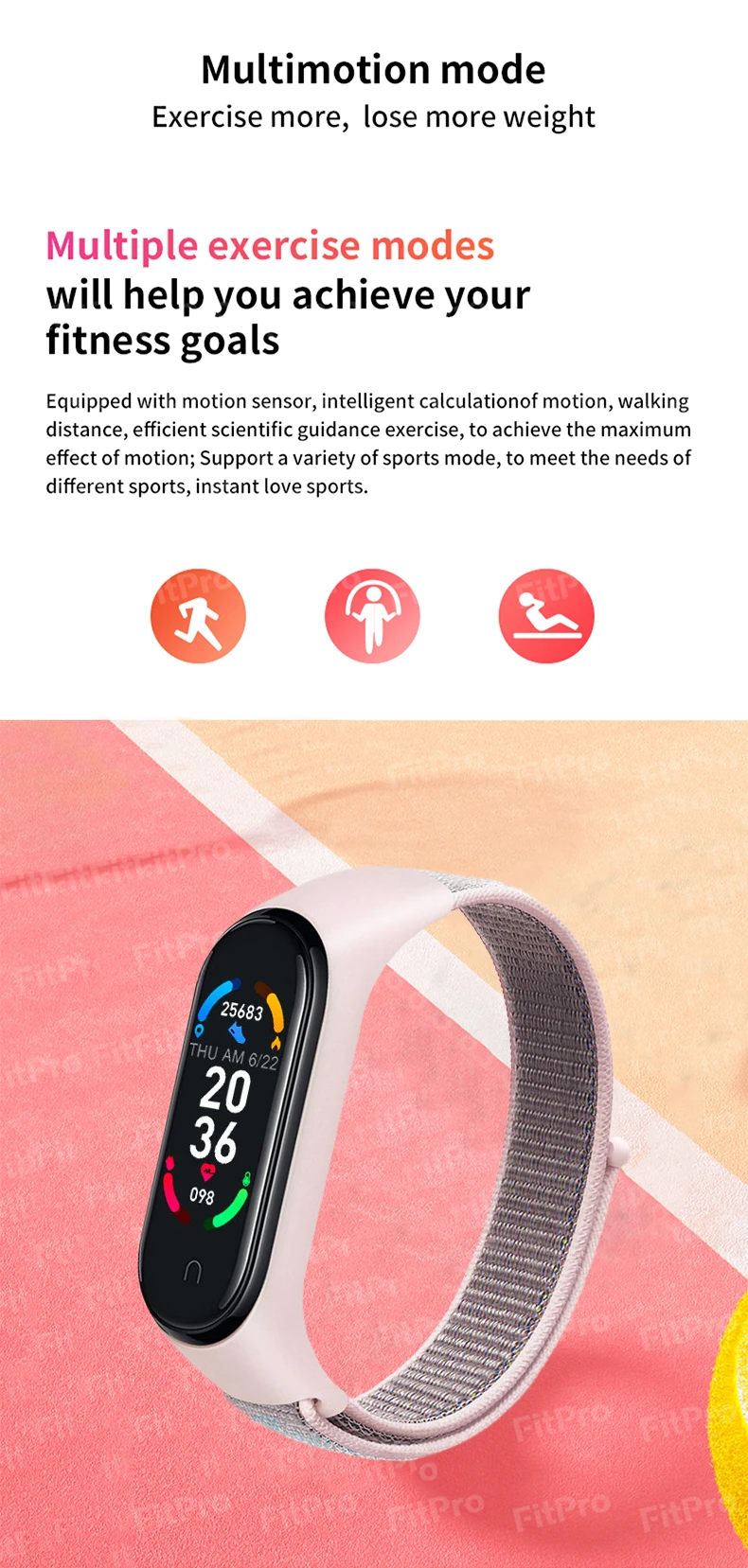 Фитнес браслет Fit Pro M6 смарт часы с магнитной зарядкой новая мод...