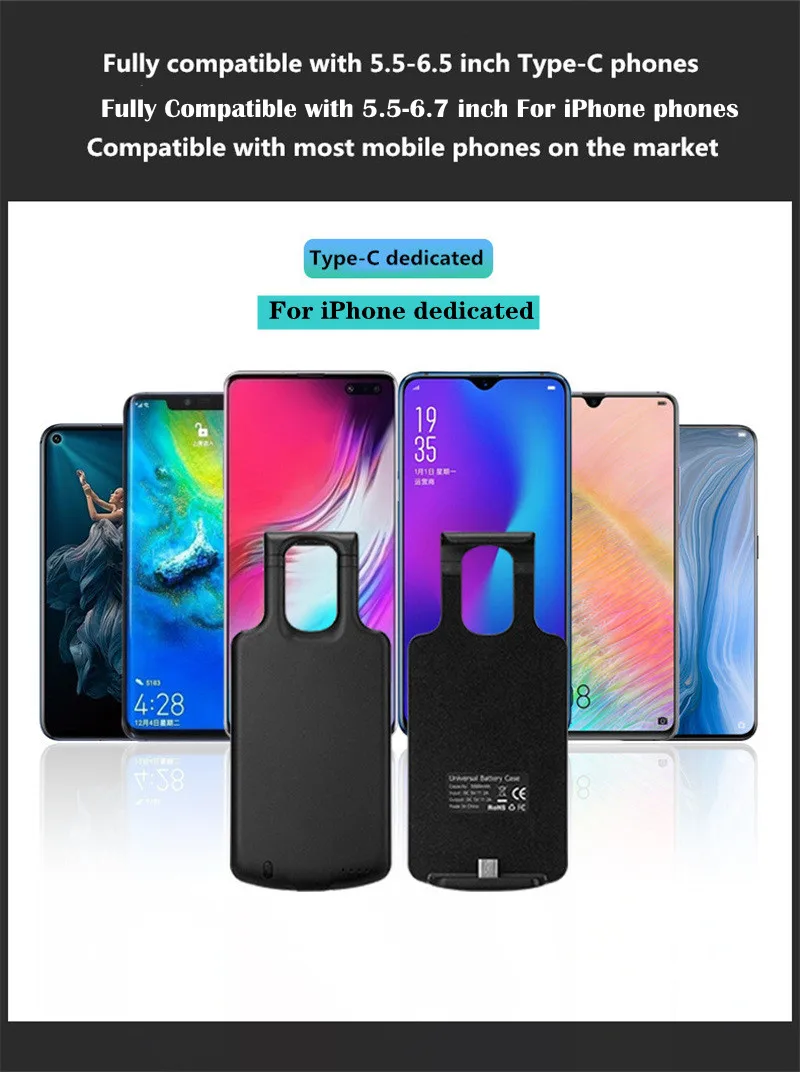 Универсальное регулируемое зарядное устройство 5,0-6,5 дюйма Type-C, чехол для Huawei, Samsung, Oneplus, Google, Xiaomi, iPhone 12 Pro, внешний аккумулятор