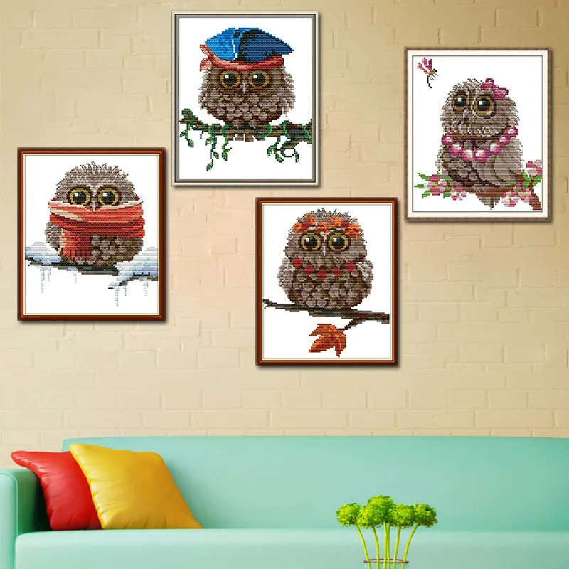 Вышивка QIUSI, Набор для вышивки крестиком сделай сам, Набор для вышивки крестиком с изображением милой рождественской совы, ручная работа, Подарочная картина