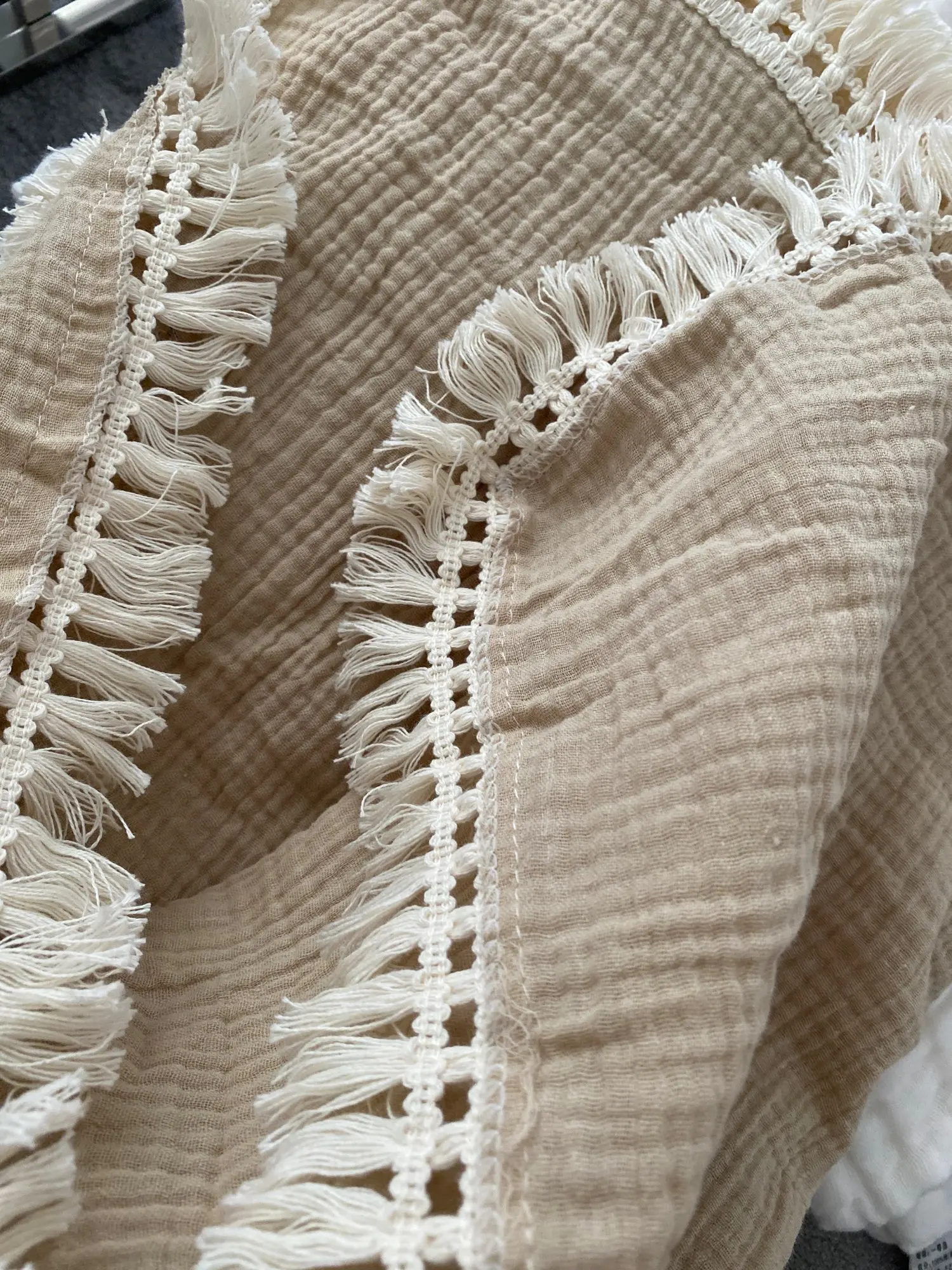 Хлопковое муслиновое Пеленальное Одеяло для новорожденных, детское одеяло с кисточками, пеленка для новорожденных, детское одеяло для кровати