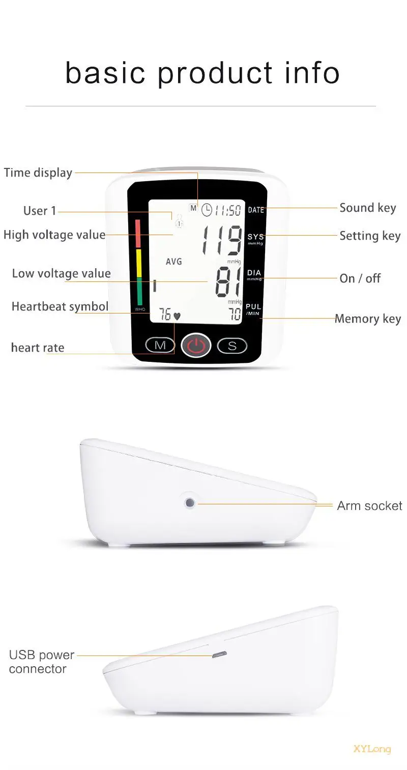 Портативный тонометр, автоматический наручный манжет, тонометр с го...