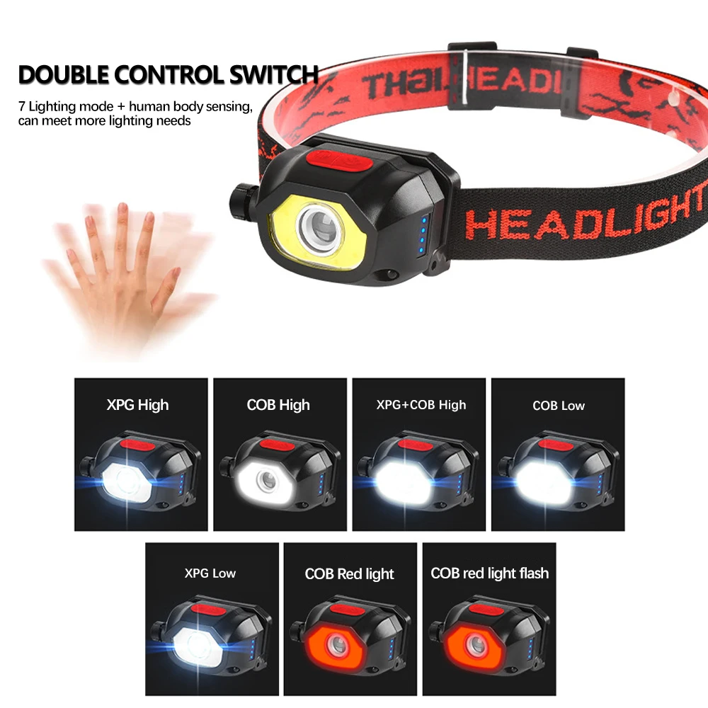 Налобный фонарь XPG светодиодный, 7 режимов, зарядка по USB