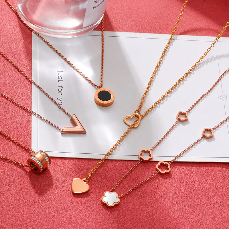 Женская цепочка с подвеской в виде сердца и цветка, из нержавеющей стали
