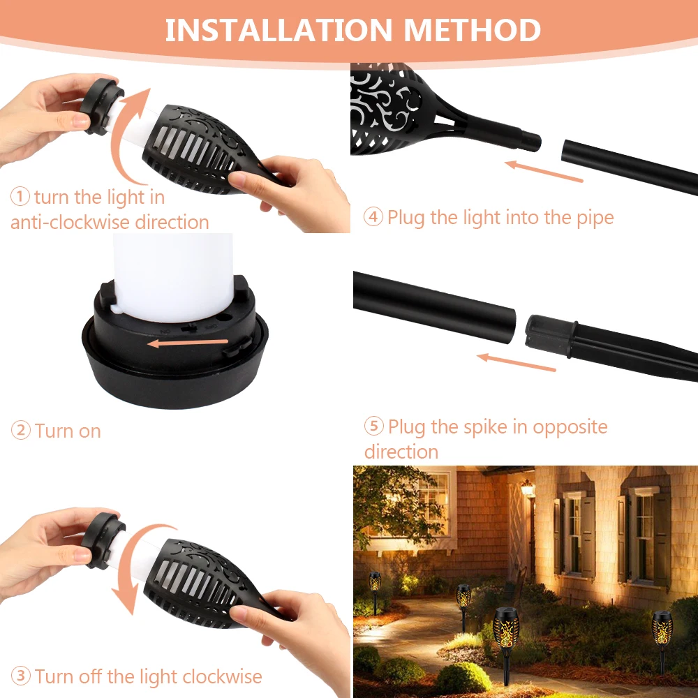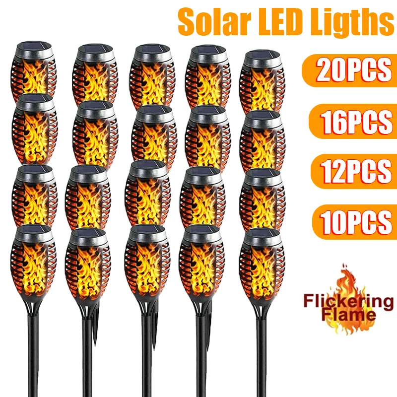 Фонарик на солнечной батарее с мерцающим пламенем, уличфонарь водонепроницаемый садовый фонарь для ландшафта, газона, 12 светодиодов, IP65