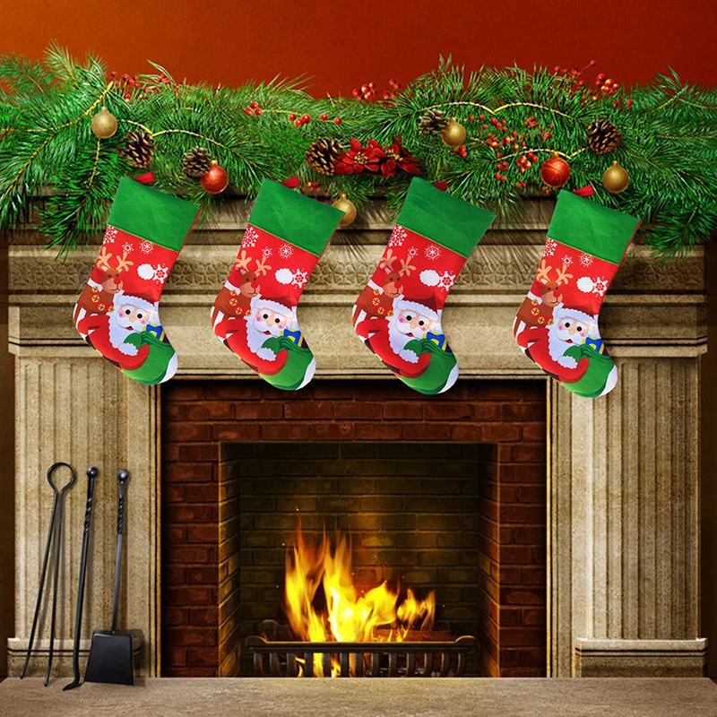 Рождественские чулки, тканевые носки Санта-Клауса, подарок для дете...