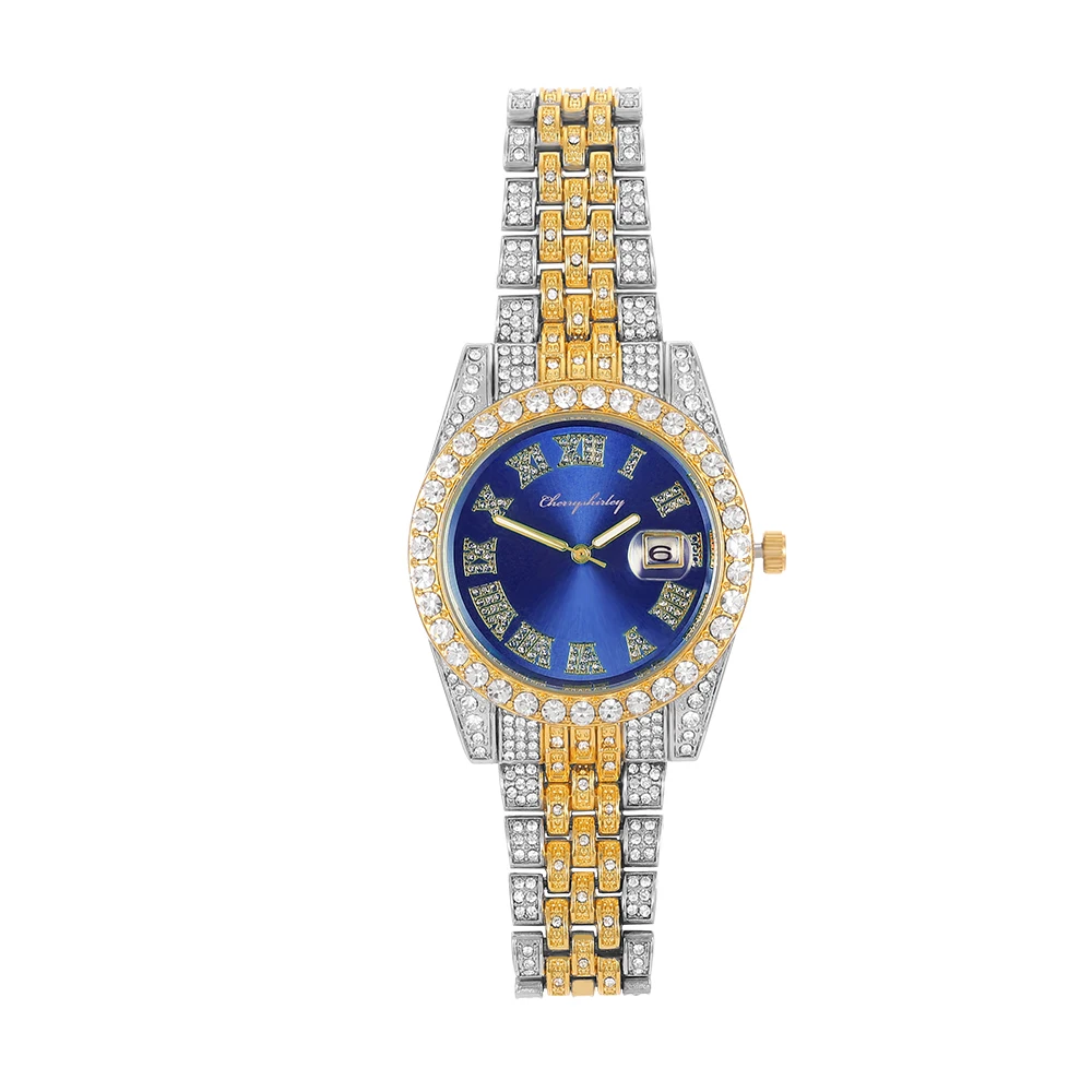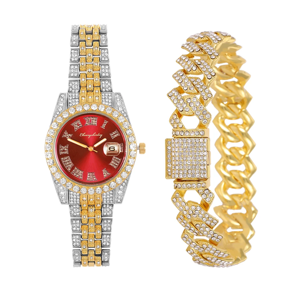 Набор мужских наручных часов, роскошные модные кварцевые золотистые часы с календарем, стразы, 2 шт.