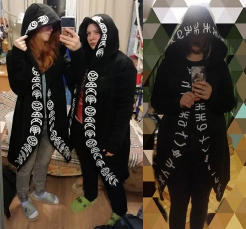 Rosetic, длинное худи, женская мода, готический, черный, панк, неровный, с капюшоном, с принтом, новинка 2022, весна, готический стиль, повседневные толстовки, уличная одежда, пальто