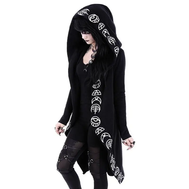 Rosetic, длинная толстовка с капюшоном, женская одежда, готический, черный, пан, нерегулярные, с капюшоном, с принтом, новая 2022 года, весенние повседневные Колготки в готическом стиле, уличное пальто