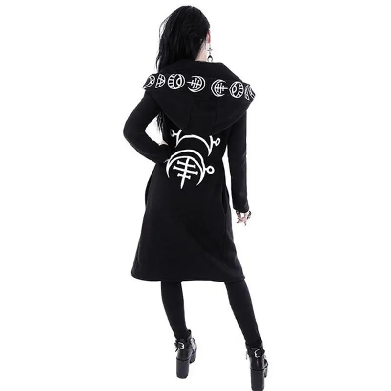 Женская Длинная толстовка с капюшоном Rosetic, модная, Готическая, черная, панк, необычная, с принтом, новинка весны 2022, повседневные толстовки, уличная одежда, пальто