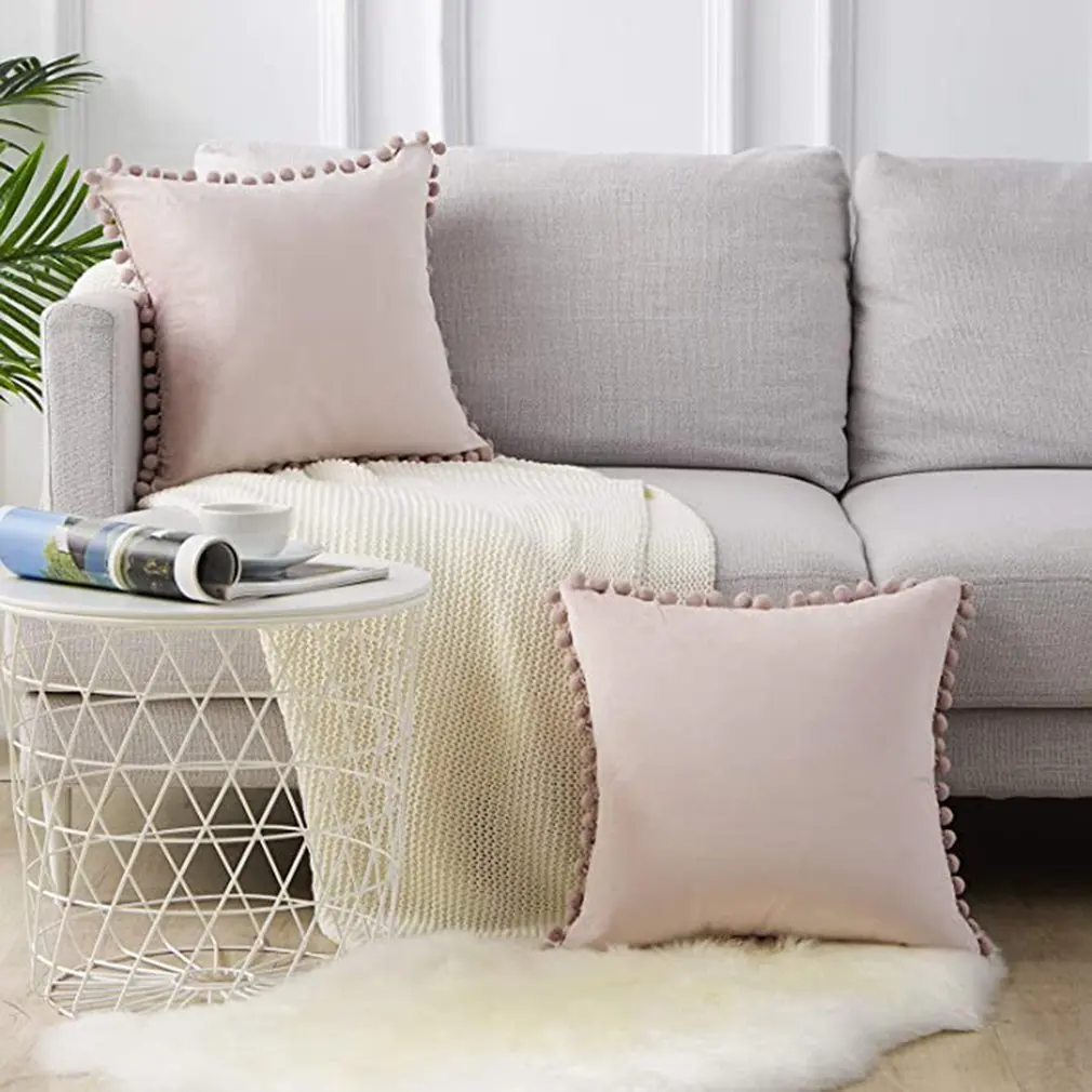 Декоративные наволочки с помпонами, мягкие бархатные однотонные наволочки для дивана, спальни, автомобиля