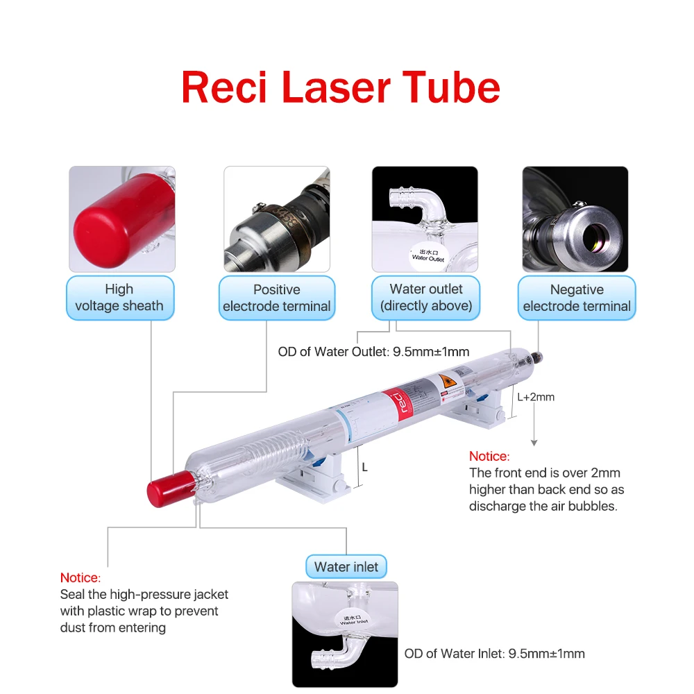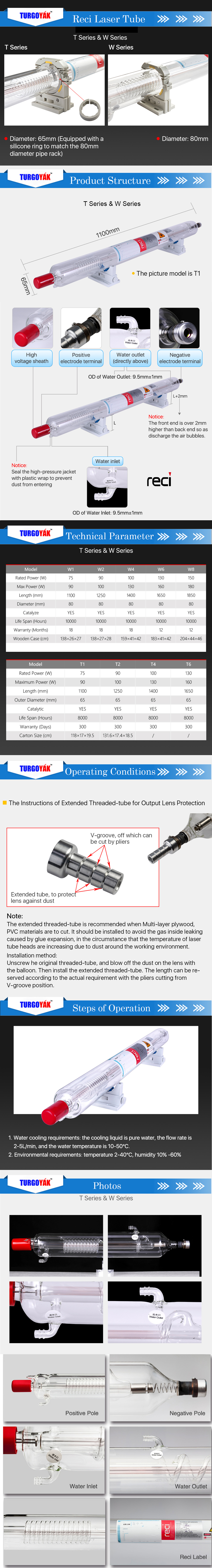 Лазерная трубка Reci CO2 для лазерного гравировального станка, лазерный режущий станок T1 T2 T4, запчасти для лазерного режущего станка CO2