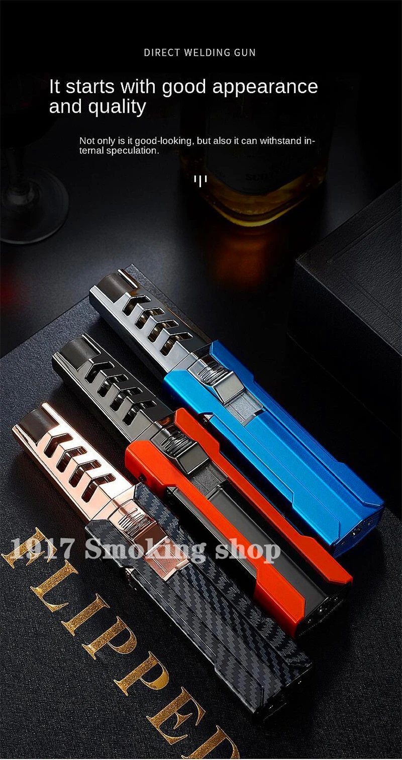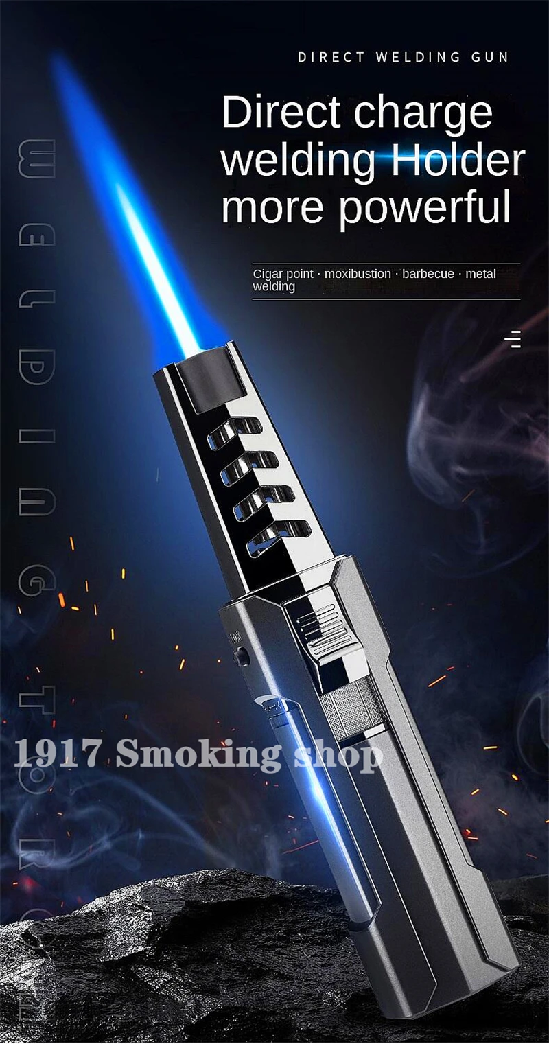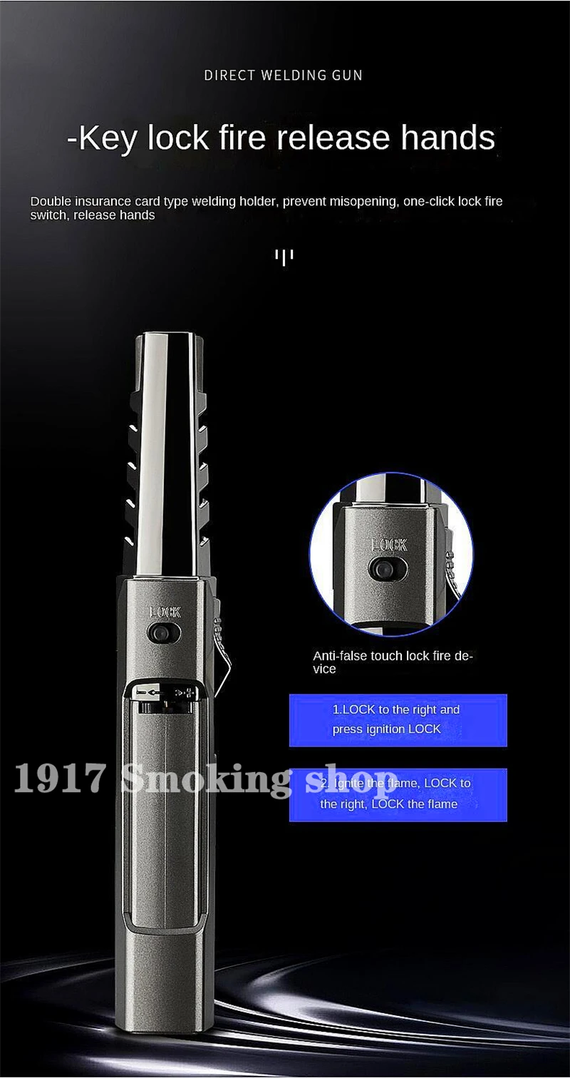 Новинка 2021, металлическая турбо-зажигалка с длинным распылителем, ветрозащитная турбонаддувная Бутановая Зажигалка с прямым впрыском синего пламени, сигаретная зажигалка