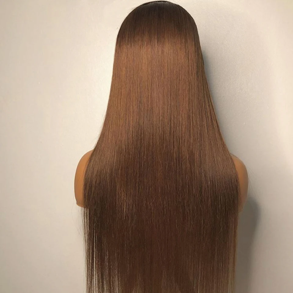 #30 темно-коричневый 26-дюймовый шелковистый прямой синтетический кружевной передний парик для женщин с детскими волосами, предварительно выщипанный, без клея, средней части, ежедневный парик