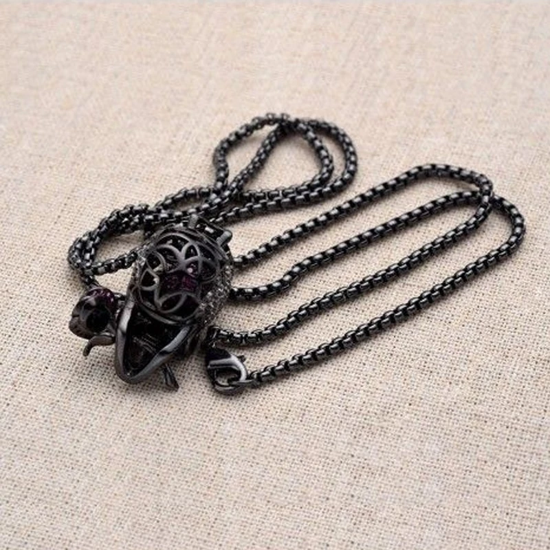 Кулон в виде темного черепа, ожерелье из хрусталя с фиолетовыми розами