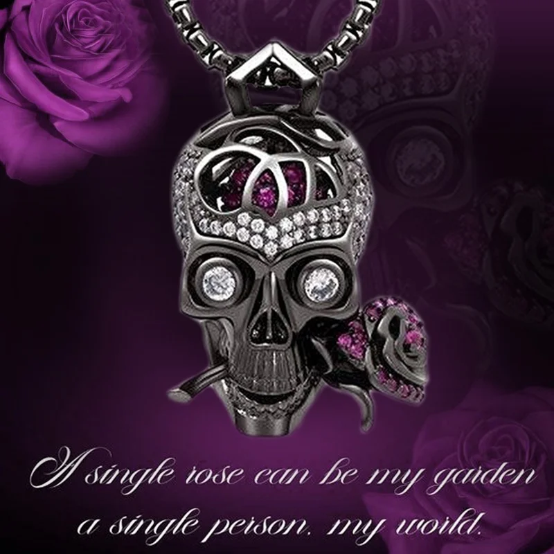 Подвеска в виде темного черепа, фиолетовый цветок розы, ожерелье из хрусталя, властные аксессуары в готическом стиле для девушек, ожерелье в стиле панк-локомотив