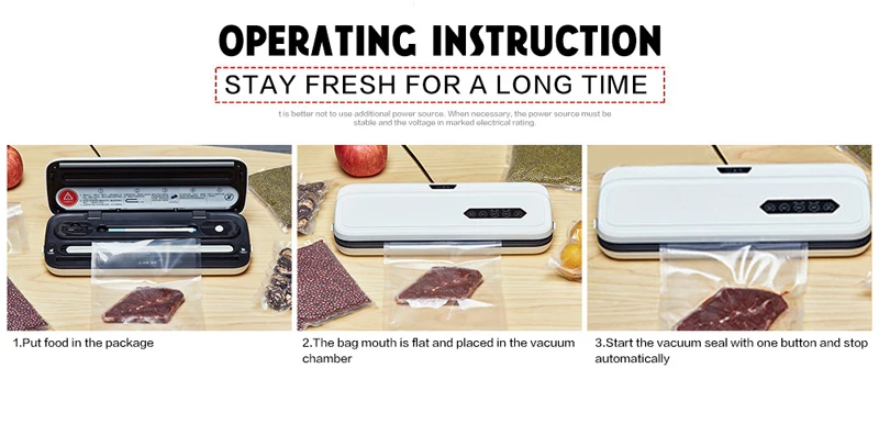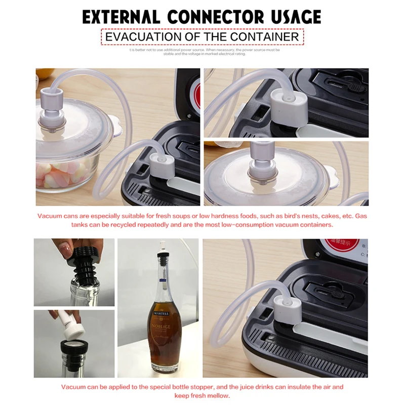 2. Машина должна использоваться со специальными мешками при вакуумной герметизации, обычные пакеты просто могут быть запечатаны, но не пылесосить.