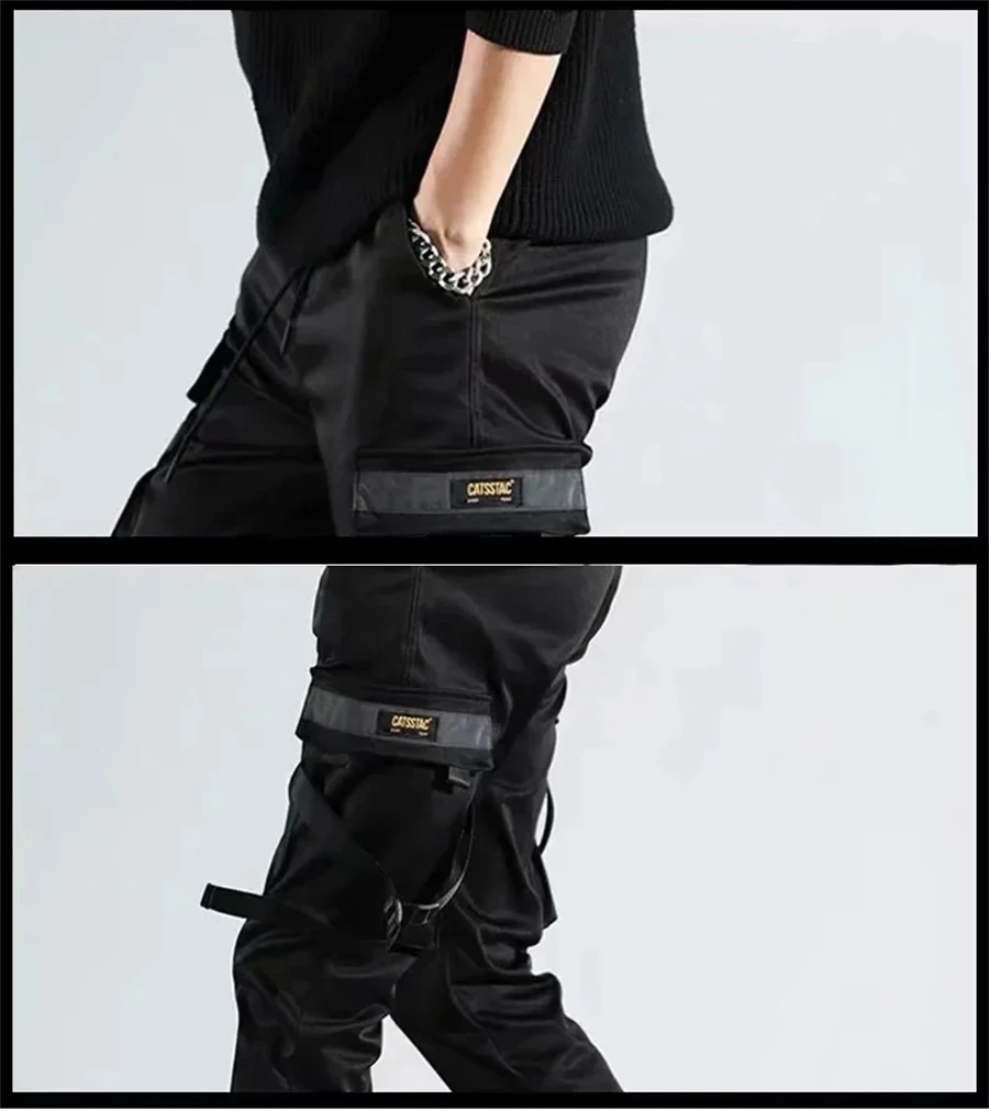 Шаровары мужские с лентами, Джоггеры в стиле хип-хоп, брюки-карго н...