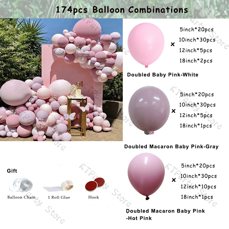 Macaron Baby Pink(5 дюймов * 20 шт., 10 дюймов * 30 шт., 12 дюймов * 5 шт., 18 дюймов * 2 шт.)