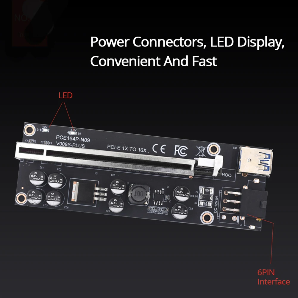 Переходная карта VER009S Plus PCI-E, 009S PCIE X1 до X16, 6 контакт...