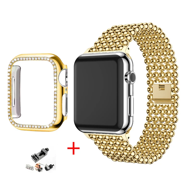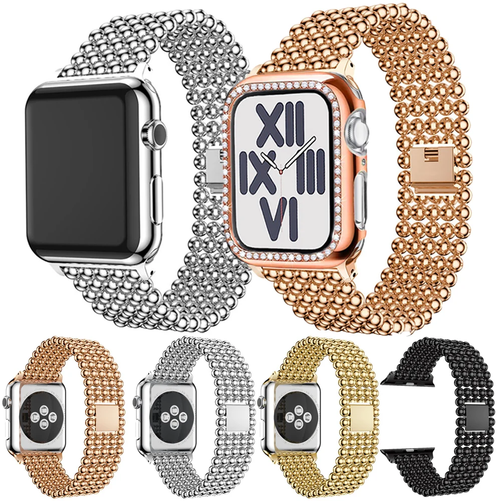 Ремешок из нержавеющей стали для apple watch series 543 42 мм 38 мм, роскошный женский браслет для iwatch 7 6 SE 5 40 44 мм 41 45 мм