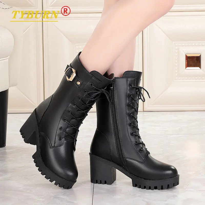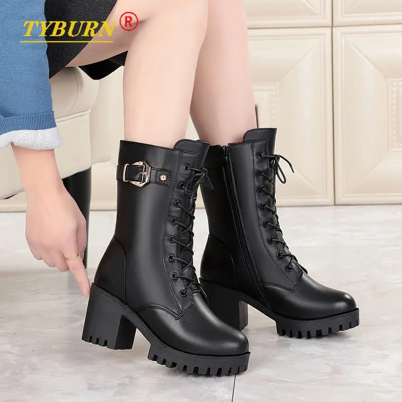 2022 зимние кожаные женские зимние сапоги на высоком каблуке, теплые женские военные сапоги на толстой шерсти, женские зимние сапоги высокого качества