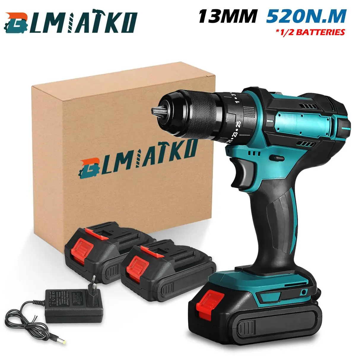Бесщеточная электрическая дрель BLMIATKO, крутящий момент, беспроводной шуруповерт нм, патрон 13 мм, литий-ионный аккумулятор, электрическая отвертка, дрель
