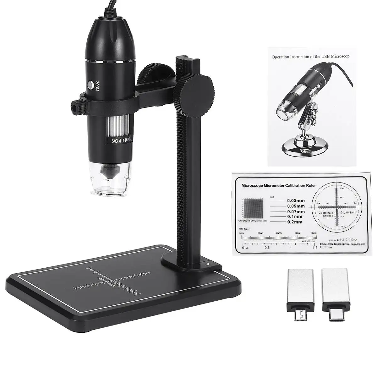Посылка включает в себя:1 x цифровой микроскоп1 x подставка1 x USB линия1 x специальный микрометр коррекции линейки для микроскопа1 Инструкция