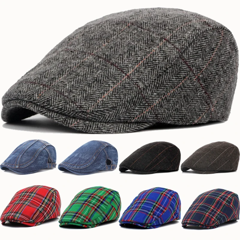 Мужские шапки газетчика осень-зима в британском западном стиле полосатые береты шапки теплые шерстяные усовершенствованные плоские плющовые Шапки Берет в стиле винтаж для мужчин