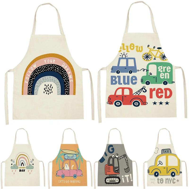 Милый детский фартук для автомобиля, фартук с радужным принтом в мультяшном стиле, фартук для готовки, фартук, аксессуары для уборки дома, нагрудник