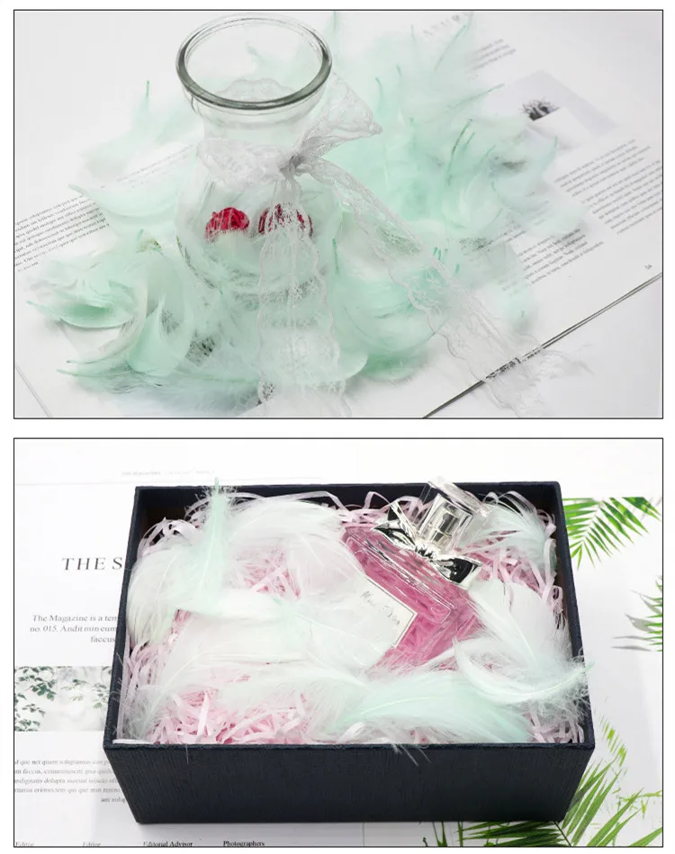 100 искусственные красочные перья, материал для упаковки подарков, наполнитель для коробки, принадлежности для рукоделия, аксессуары для украшения свадебной вечеринки, дня рождения